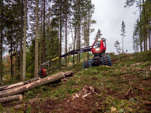 Kuulostaa monimutkaiselta - mutta käytännössä se tarkoittaa, että jos nosturi työskentelee kaukana koneesta ja kantaa raskasta puuta, kaksi vakautussylinteriä toimii automaattisena vastavoimana vakauden ylläpitämiseksi. Tämä innovaatio yhdistettynä automaattisesti tasaavaan ohjaamoon tekee Komatsun hakkuukoneista erittäin vakaita ja mukavia työskennellä.